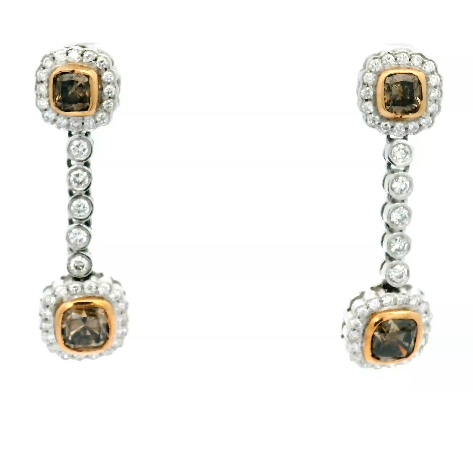 Fancy Brown Diamond Double Halo Drop Earrings